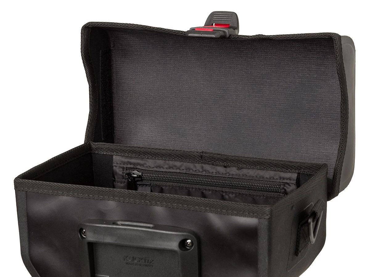 Die Lenkertasche wird inklusive einer vormontierten Klickfix-Platte geliefert, die in die Klickfix-Lenker(stift)halterung passt. Dieses System ist nicht im Lieferumfang enthalten.