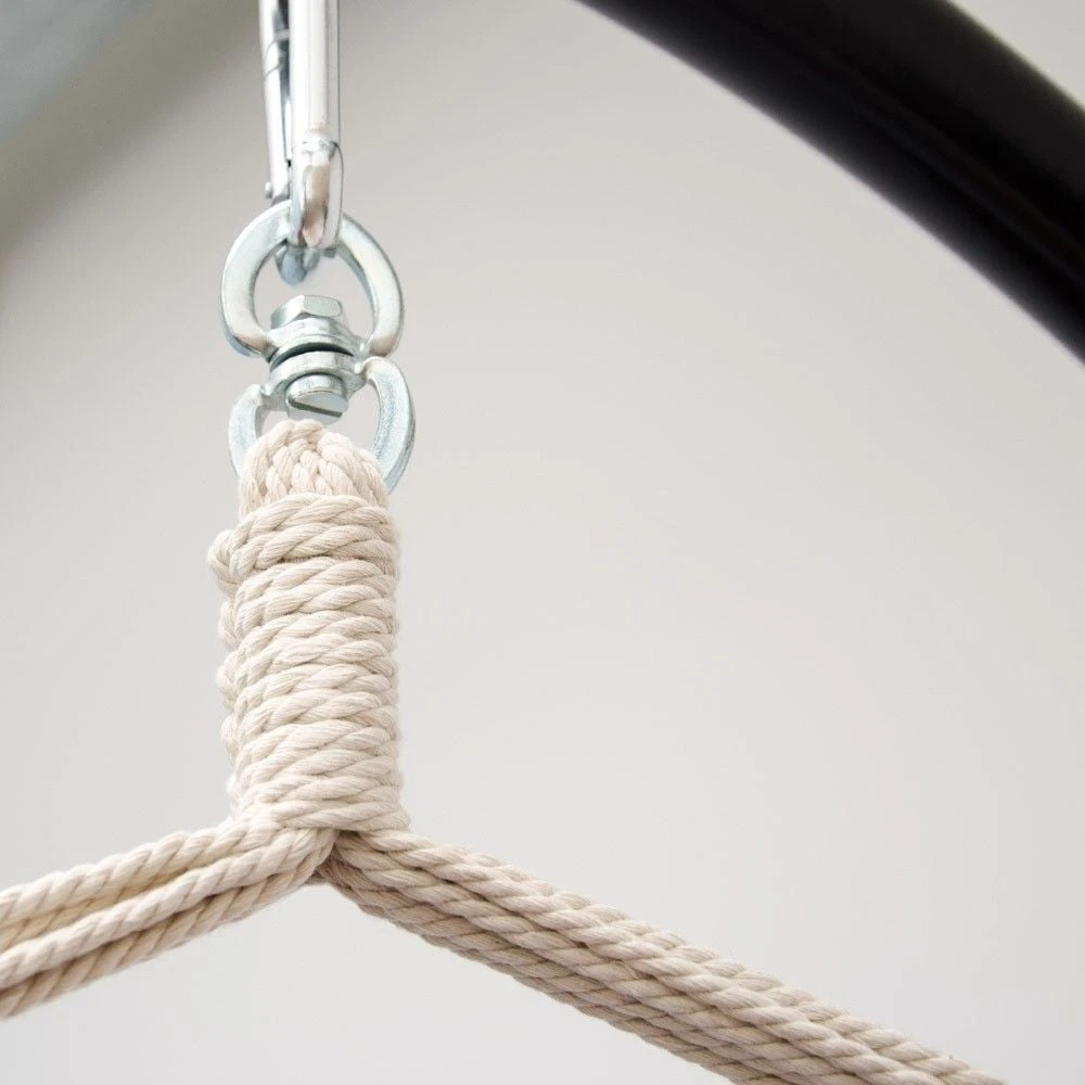 Genial als Hängesessel für Kinder: Das mitgelieferte Drehgelenk ermöglicht eine komplette Drehung. Dazu schützt es die Aufhängung – und der Hängesessel verknotet sich nicht.