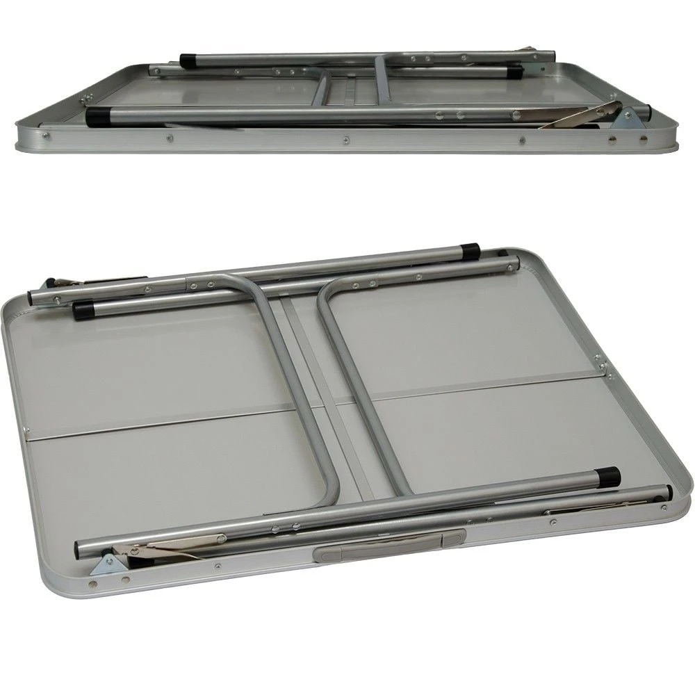 Suchen Sie einen der leichtesten Campingtische? Mit diesem treffen Sie garantiert die richtige Wahl. Mit federleichten 3 kg lässt sich der Koffertisch ohne Mühen überall hintragen. Ein unverzichtbarer Begleiter bei Campen, denn der Camping-Koffertisch nimmt zusammengeklappt kaum Platz weg.