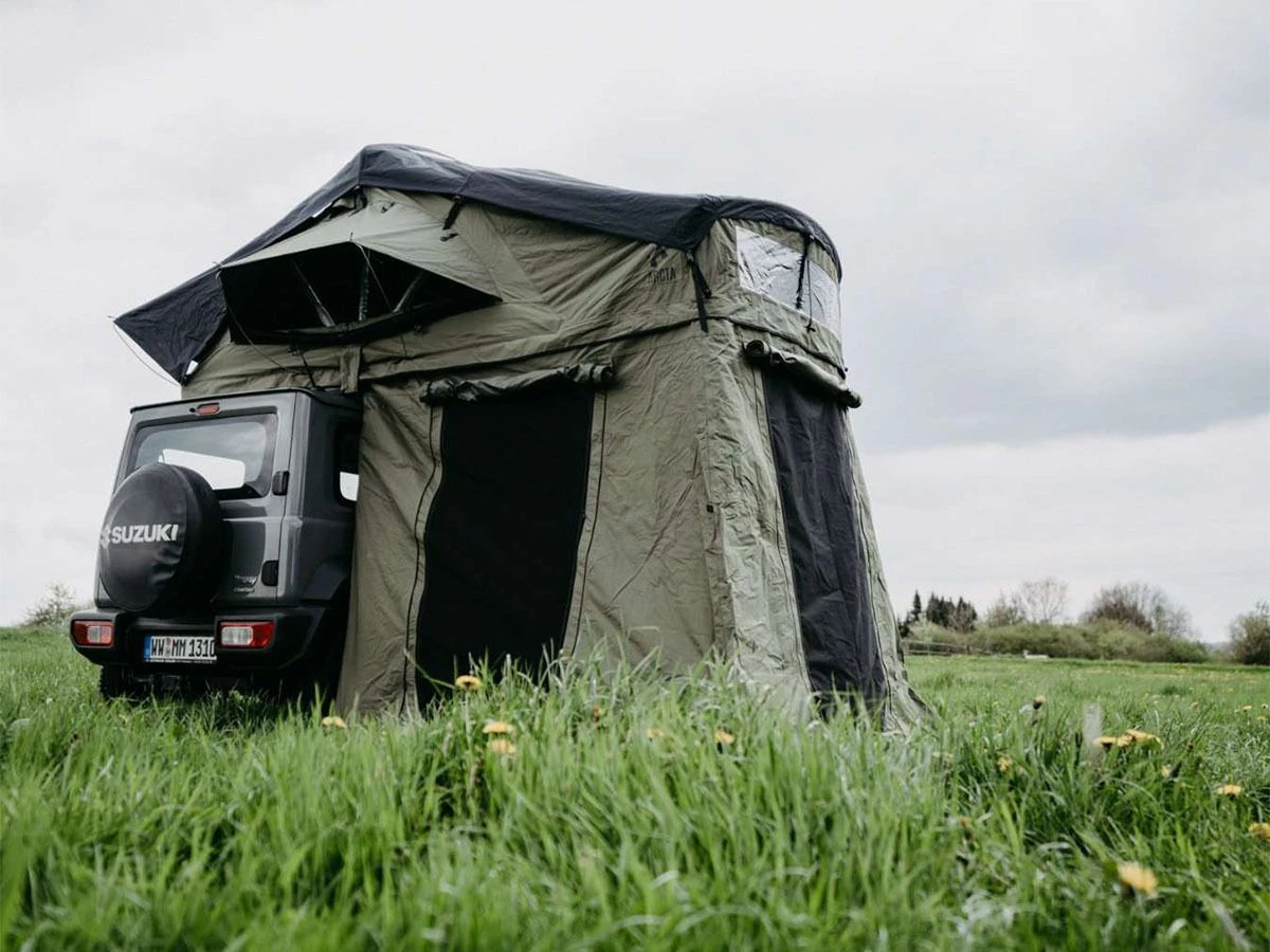 Das Arcta Viator 140 Pro Vorzelt – 160 cm ist ein praktisches Vorzelt, das unter dem Arcta Viator 140 Pro Dachzelt angebracht werden kann.