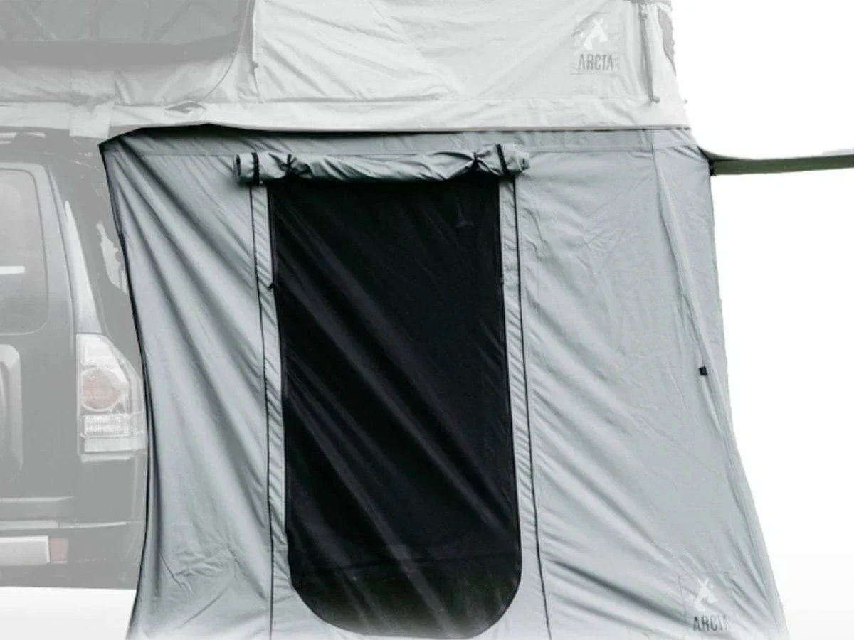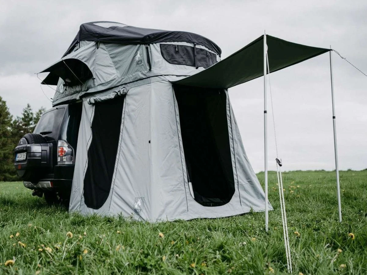 Das Arcta Viator 160 Vorzelt – 190/220 cm ist ein praktisches Vorzelt, das unter das Arcta Viator 160 Dachzelt gestellt werden kann.