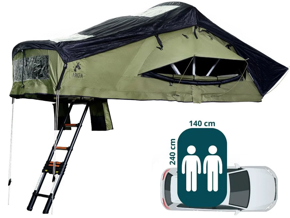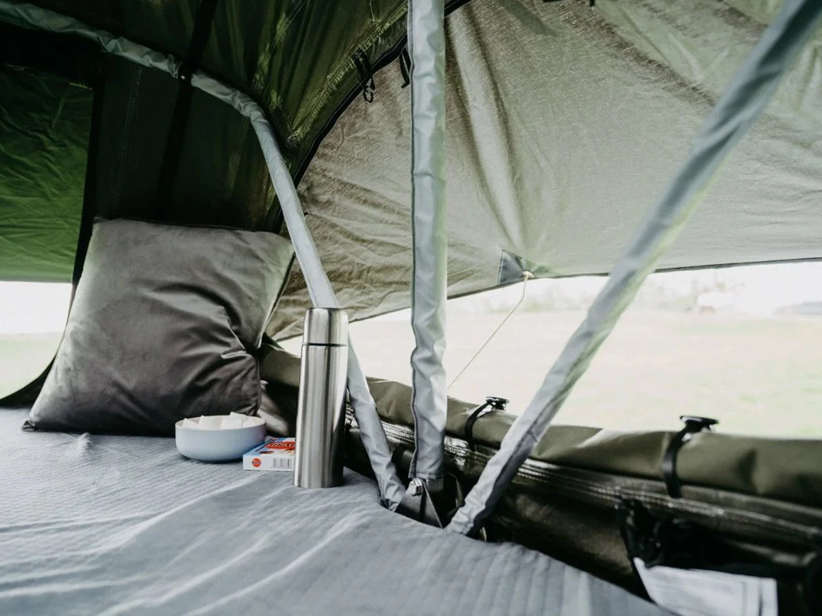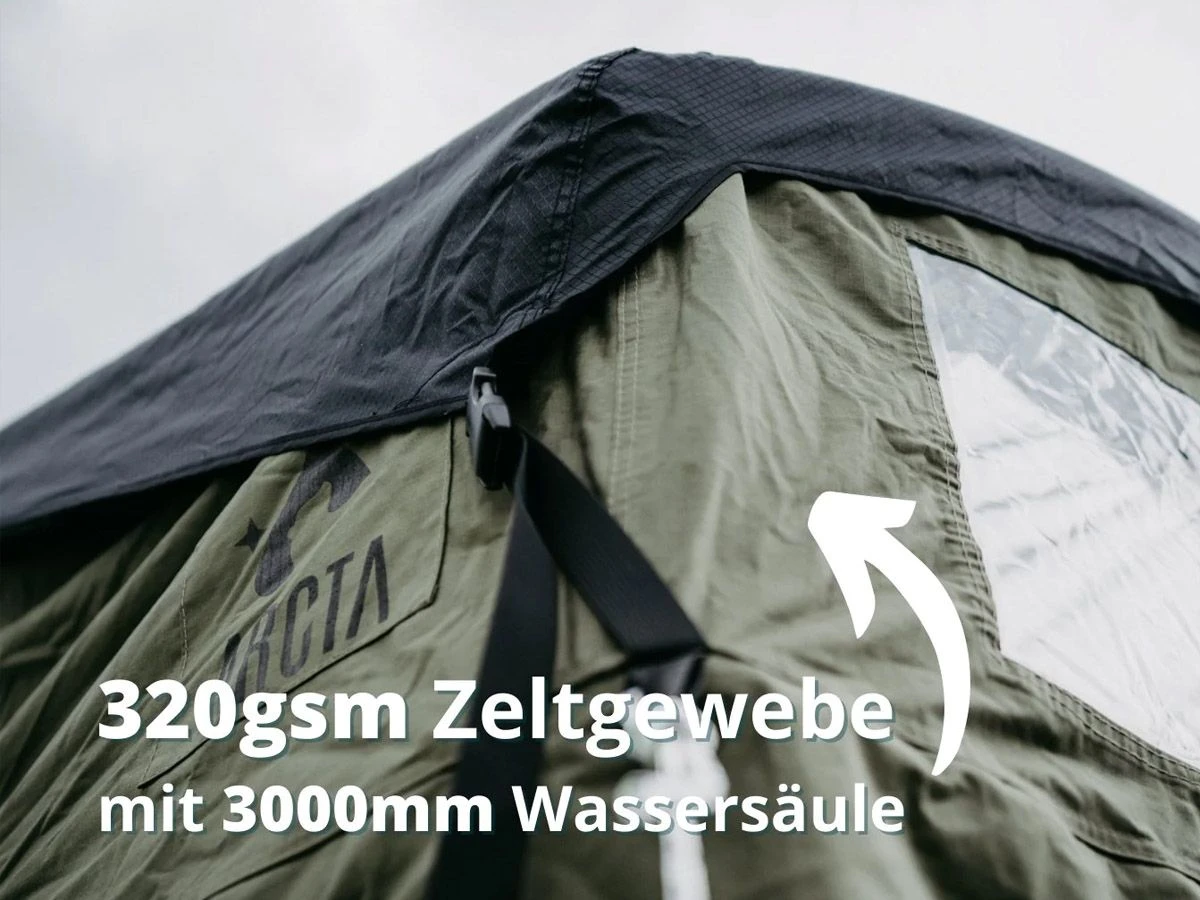 Das Arcta Viator PRO 140 ist ein Softcover-Dachzelt für bis zu 2 Personen, Antikondensmatte inbegriffen.