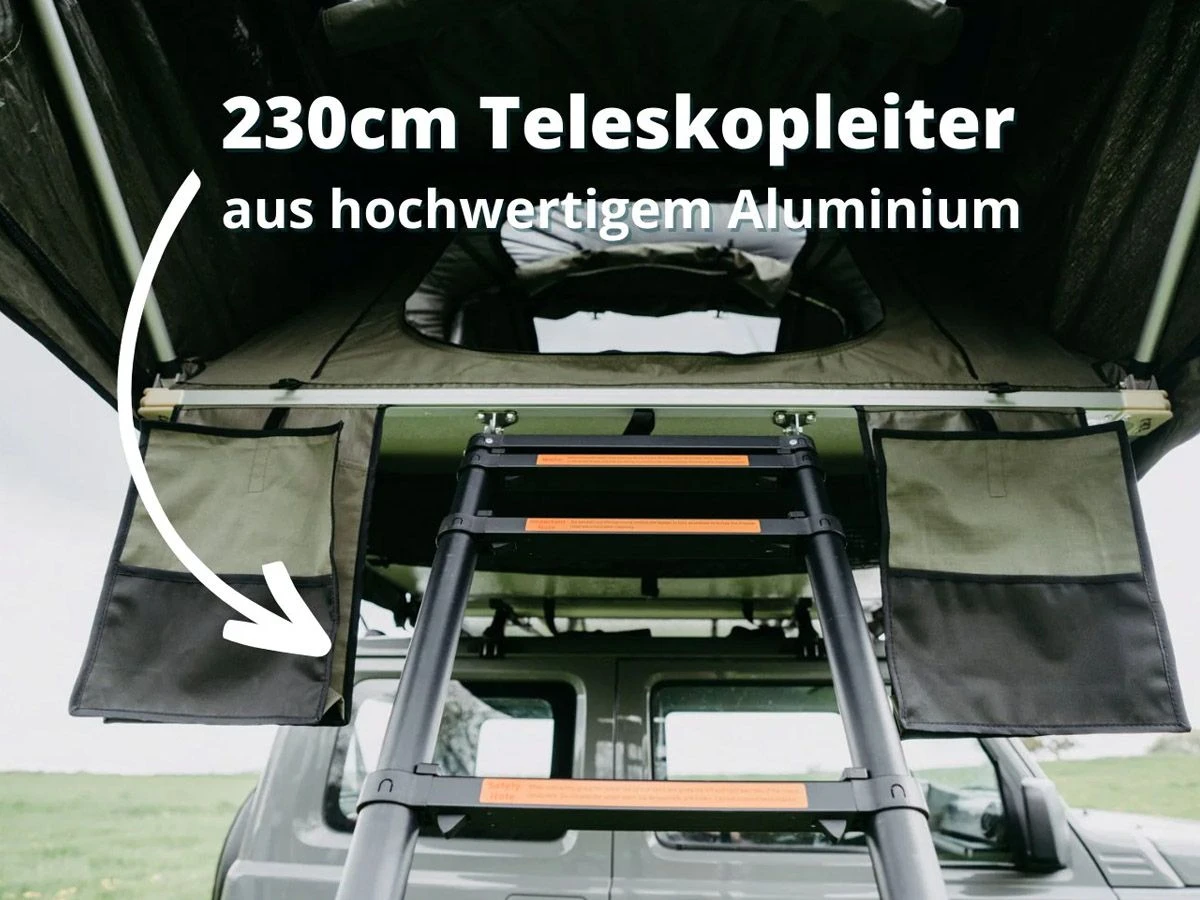 Viator ist Lateinisch und bedeutet Reisender. Dieses Dachzelt der deutschen Marke Arcta macht seinem Namen wirklich alle Ehre. Dieses Dachzelt ist einfach auf- und zusammenklappbar und daher für den rundreisenden Camper sehr geeignet. Das Auf- und Zusammenklappen ist ein Kinderspiel. Dank der integrierten Leiter lässt sich das Dachzelt einfach öffnen und schließen. Dank des Hebeleffekts der Leiter ist dies auch für Personen mit weniger Armkraft gut machbar.
