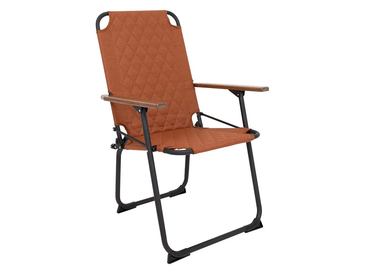 Der Klassiker im modernen Industrie-Look. Ein Stuhl, der Stil, Komfort und Funktionalität vereint. Ausgestattet mit einer gepolsterten Cationic-Polsterung für ultimativen Komfort, einem leichten Aluminiumrahmen und Armlehnen aus Bambus. Außerdem sind die Nähte mit einem modernen Muster versehen. Ein idealer Stuhl für den Garten oder beim Camping, aber auch auf dem Balkon und im Wohnzimmer. Außerdem ist dieser Stuhl mit zusätzlichen Stabilisatoren und einem „“Sicherheitsschloss““ gegen ungewolltes Zusammenklappen ausgestattet. Kompakt zum Mitnehmen..