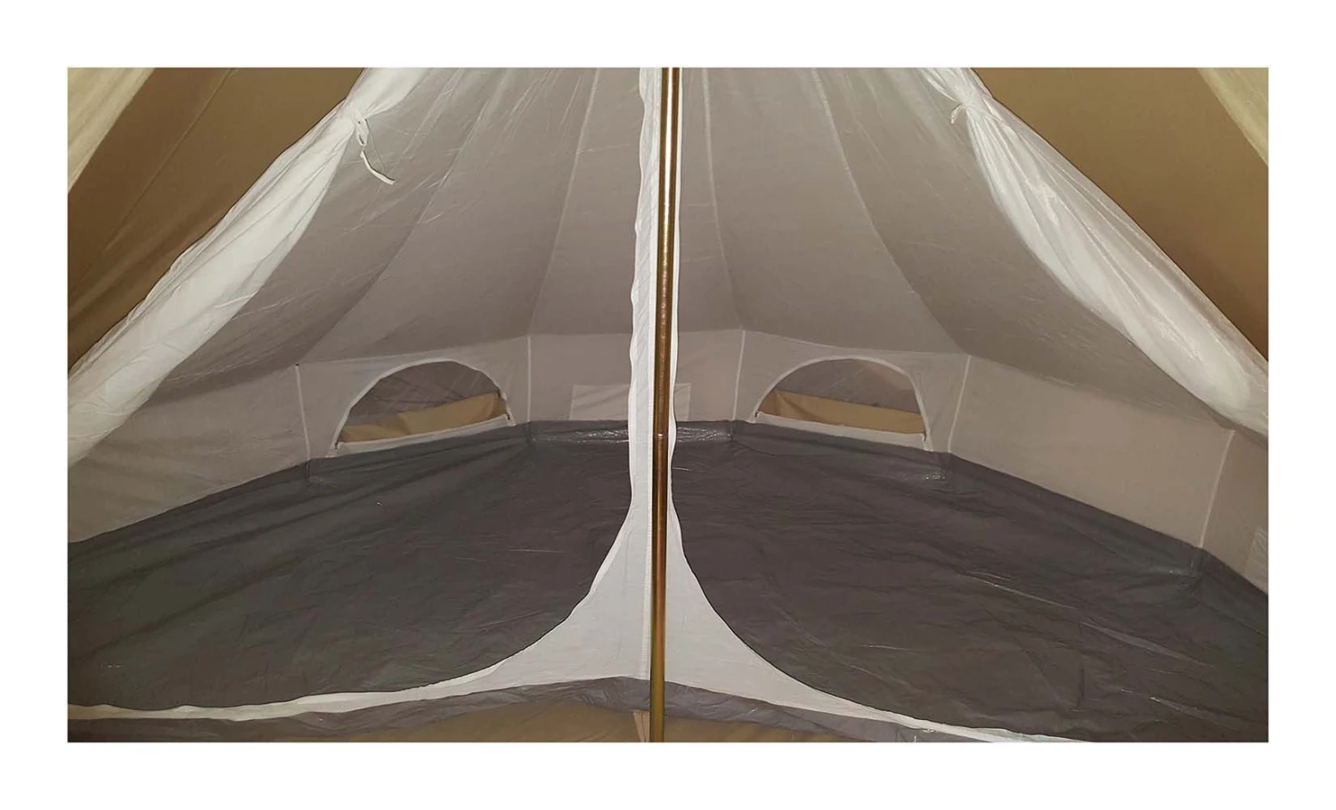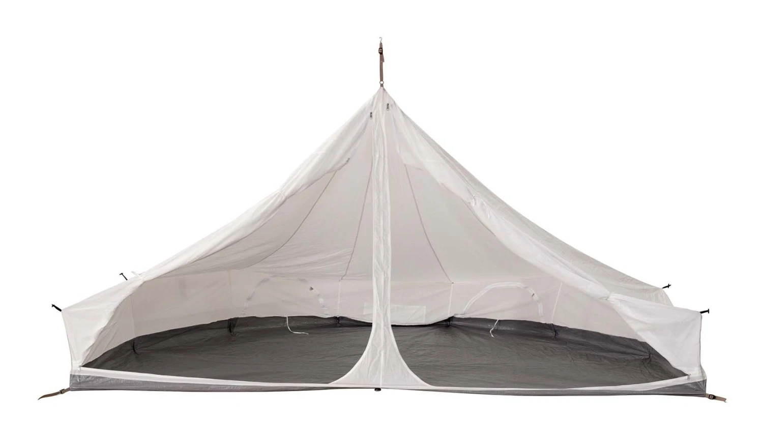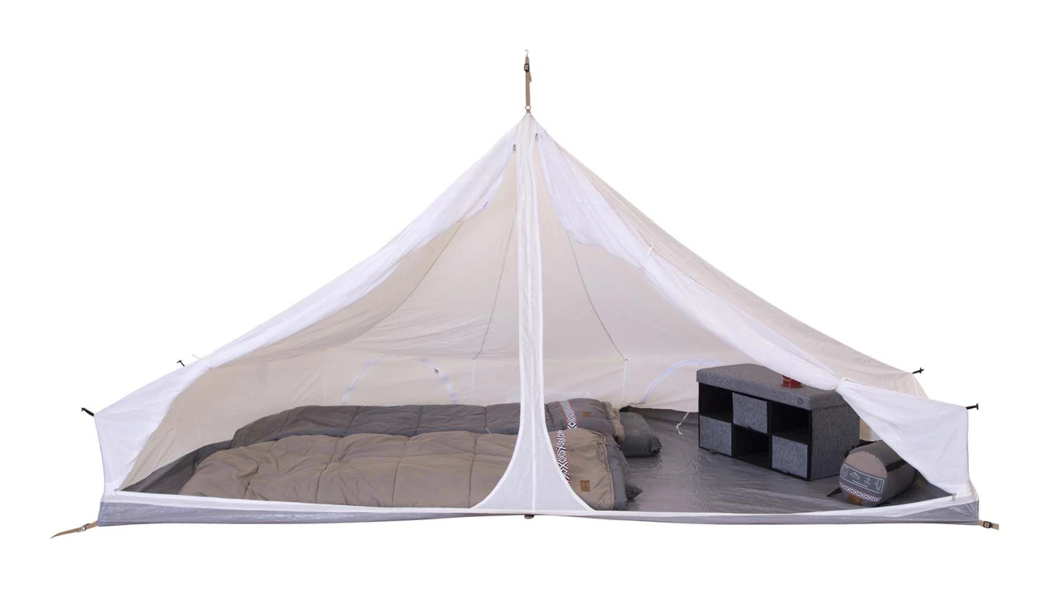 Ein Innenzelt für das klassische Bell/Sahara Zelt Bo-Camp. Dieses Innenzelt bietet Schlafplatz für 3 Personen. Das Innenzelt kann mit 2 Netztüren geschlossen werden und im Inneren befinden sich drei nützliche Aufbewahrungstaschen. Es kann leicht mit den S-Haken befestigt werden. Das Innenzelt ist aus 76 Gramm Baumwolle mit einer 120 Gramm PE-Bodenplane hergestellt.