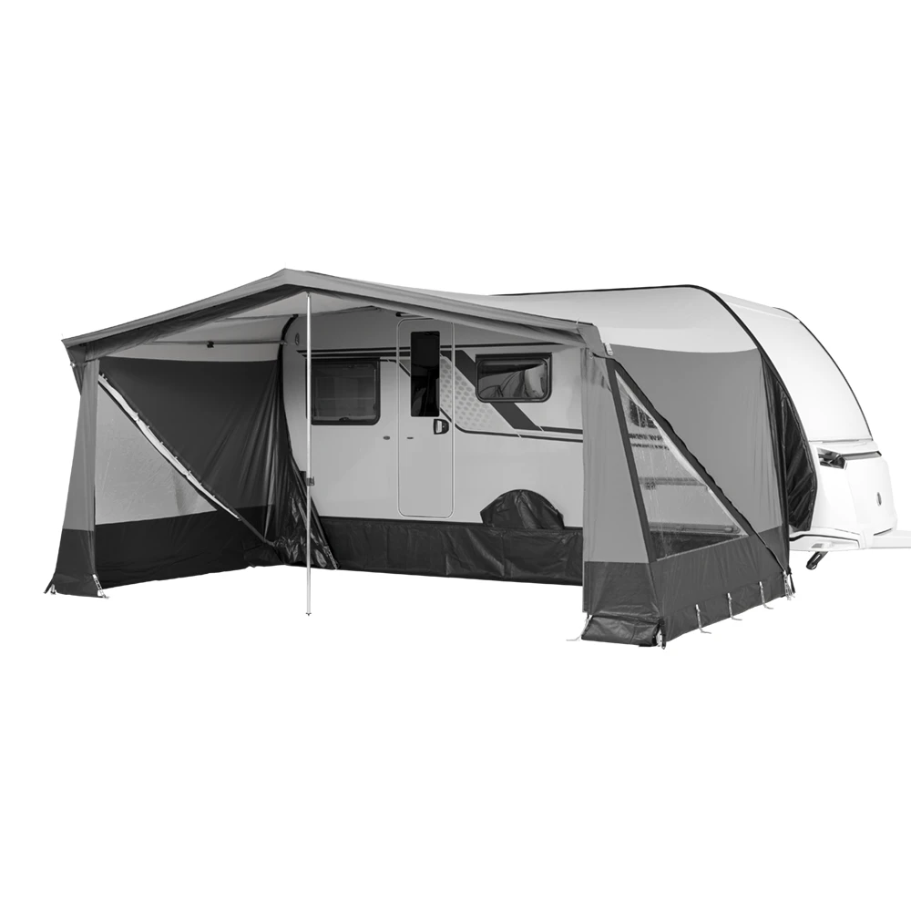 Der Orion 250 bietet den Komfort und die Freiheit einer Sonnendach, kombiniert mit den Vorteilen und dem Komfort einer Vorzelt! Das Campout-Vorzelt Orion 250 bietet einen komfortablen Außenbereich für Camping-Abenteuer. Mit hochwertigen Materialien, einfacher Montage und modernem Design bietet das Vorzelt eine ideale Erweiterung Ihres Wohnraums am Wohnwagen mit Schutz und Funktionalität.
