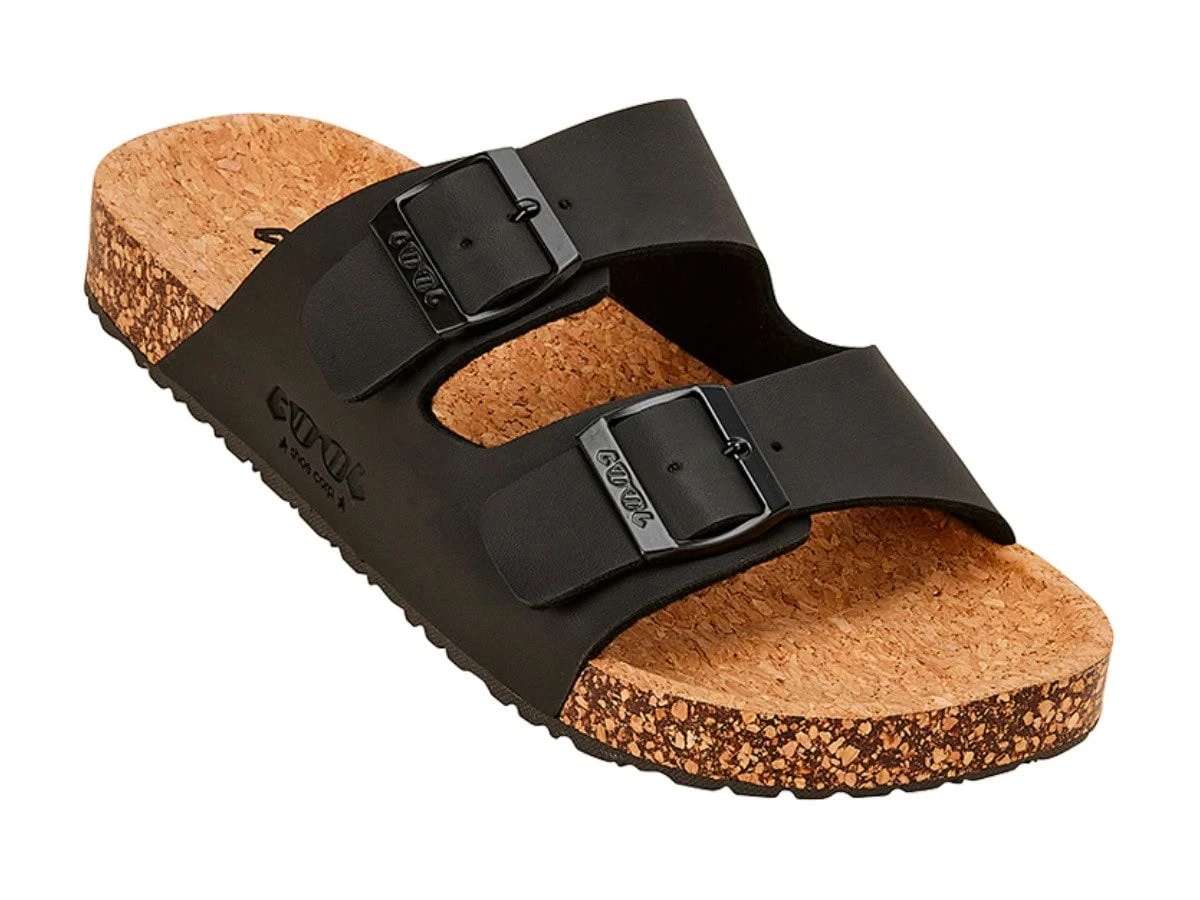 Die anatomisch geformte Fußbett mit Korkschicht bietet natürlichen Halt und Dämpfung. Zwei verstellbare Schnallen und ein atmungsaktives Mikrofaserfutter sorgen für optimalen Sitz – perfekt für warme Sommertage.