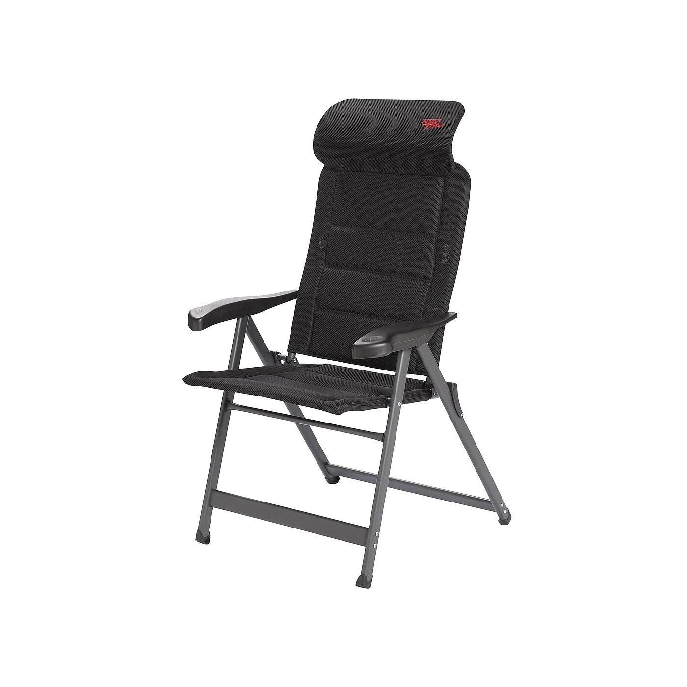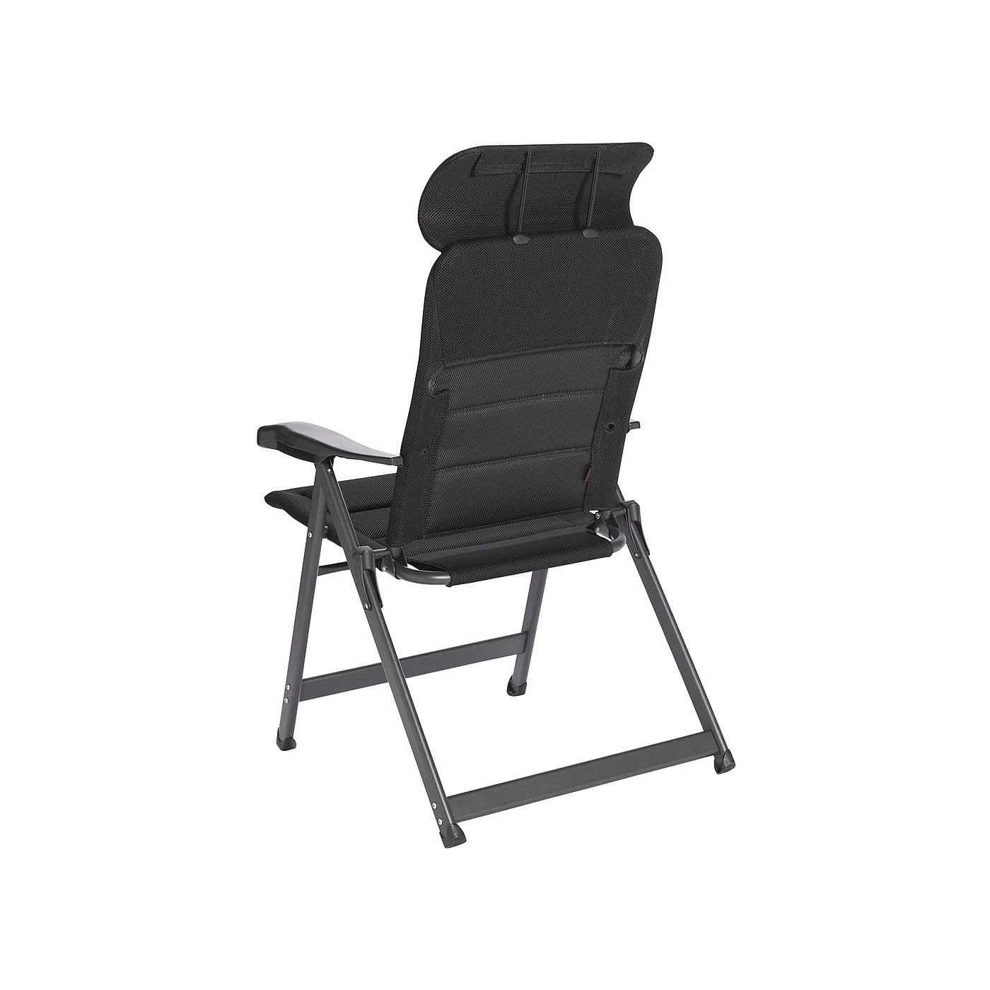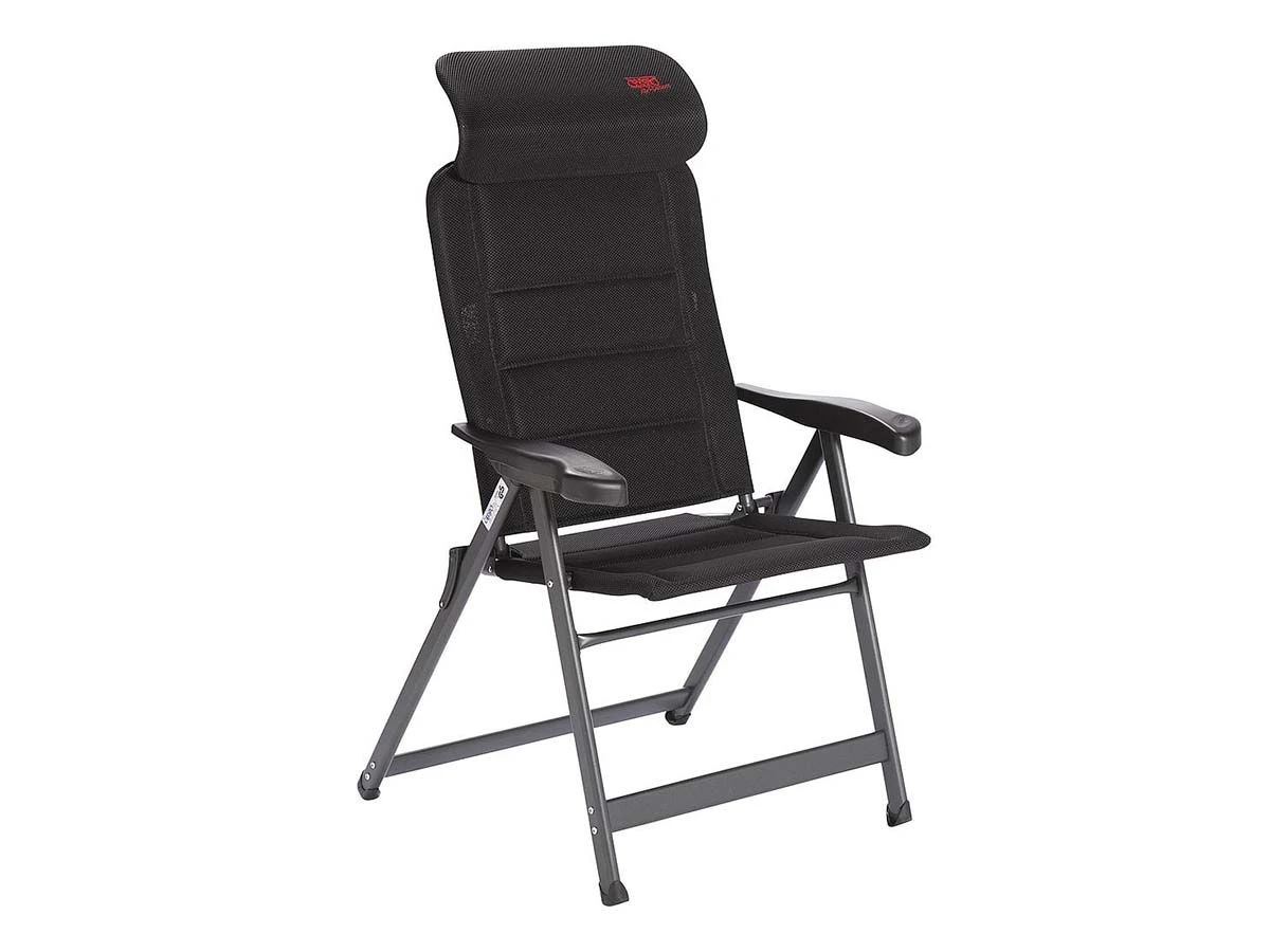 Ein sehr luxuriöser, kompakter und verstellbarer Stuhl. Dieser Stuhl bietet dank der siebenfach verstellbaren Rückenlehne und der stufenlos einstellbaren Kopfstütze maximalen Komfort. Die komfortable 3D-Polsterung des Stoffs ist besonders luftdurchlässig und speichert aufgrund der offenen Zellstruktur keine Feuchtigkeit. Dadurch trocknet dieser Stuhl deutlich schneller als Stühle mit herkömmlicher Schaumstoffpolsterung. Zudem sind Rückenlehne, Sitzfläche und Armlehnen ergonomisch geformt. Der Stuhl ist mit einem eloxierten H-Rahmen ausgestattet, der extra Stabilität und Sicherheit gewährleistet. Der Stuhl ist im eingeklappten Zustand sehr kompakt und dadurch einfach zu transportieren., Ein sehr luxuriöser, bequemer und stabiler verstellbarer Klappstuhl. Besonders komfortabel dank der Air-Deluxe Dry Foam-Polsterung. Die bequeme Polsterung ist dank der offenen Zellstruktur zudem wasserdurchlässig. Maximaler Komfort dank der 7-fach verstellbaren Rückenlehne und der stufenlos verstellbaren Kopfstütze. Sowohl die Rückenlehne als auch der Sitz und die Armlehnen sind ergonomisch geformt. Sein Design und die Fußkappen machen den Klappstuhl besonders standfest. Sehr kompakt und einfach zu transportieren. Ideal für den Zeltanhänger, Buscamper und andere Camper. Hervorragende Qualität. Mit TÜV-Gütesiegel.