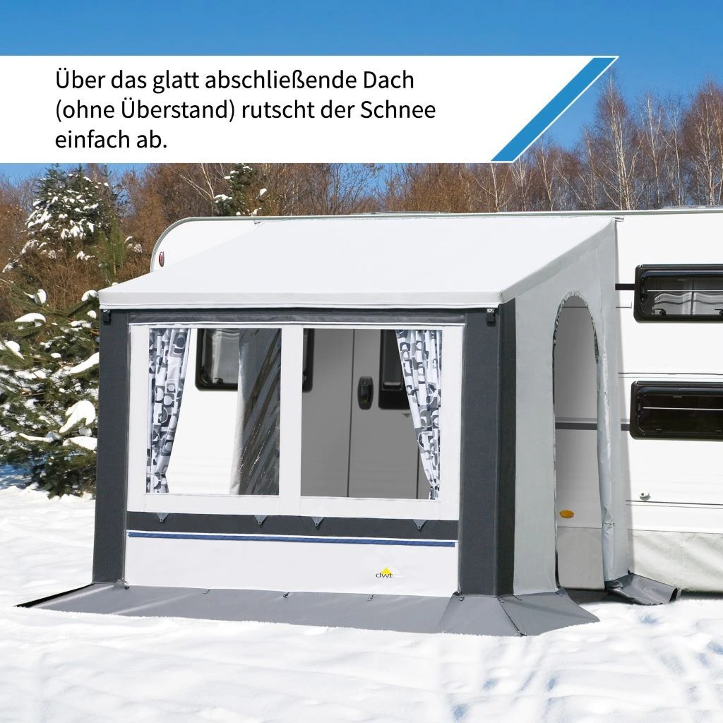 Ideale Lösung für Wintercamping: Unser Wintercamping-Vorzelt wurde speziell entwickelt, um Ihren Campingausflug im Winter zu optimieren. Mit einem glatt abschließenden Dach ohne Überstand ermöglicht es ein einfaches Abrutschen von Schnee, während das Material geschont wird. Die angenähten, volumenreichen Schaumstoffwülste sorgen für eine tadellose Abdichtung und zusätzliche Isolierung.