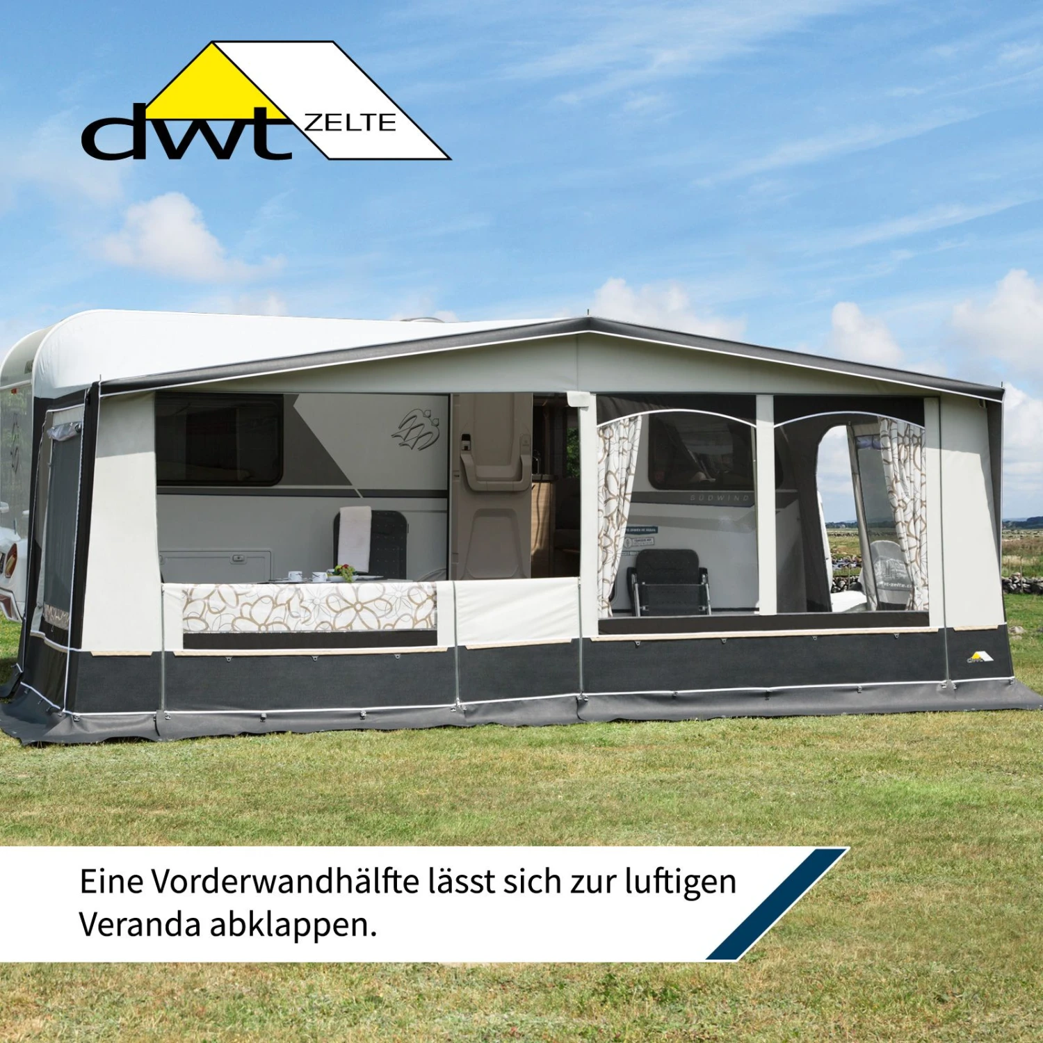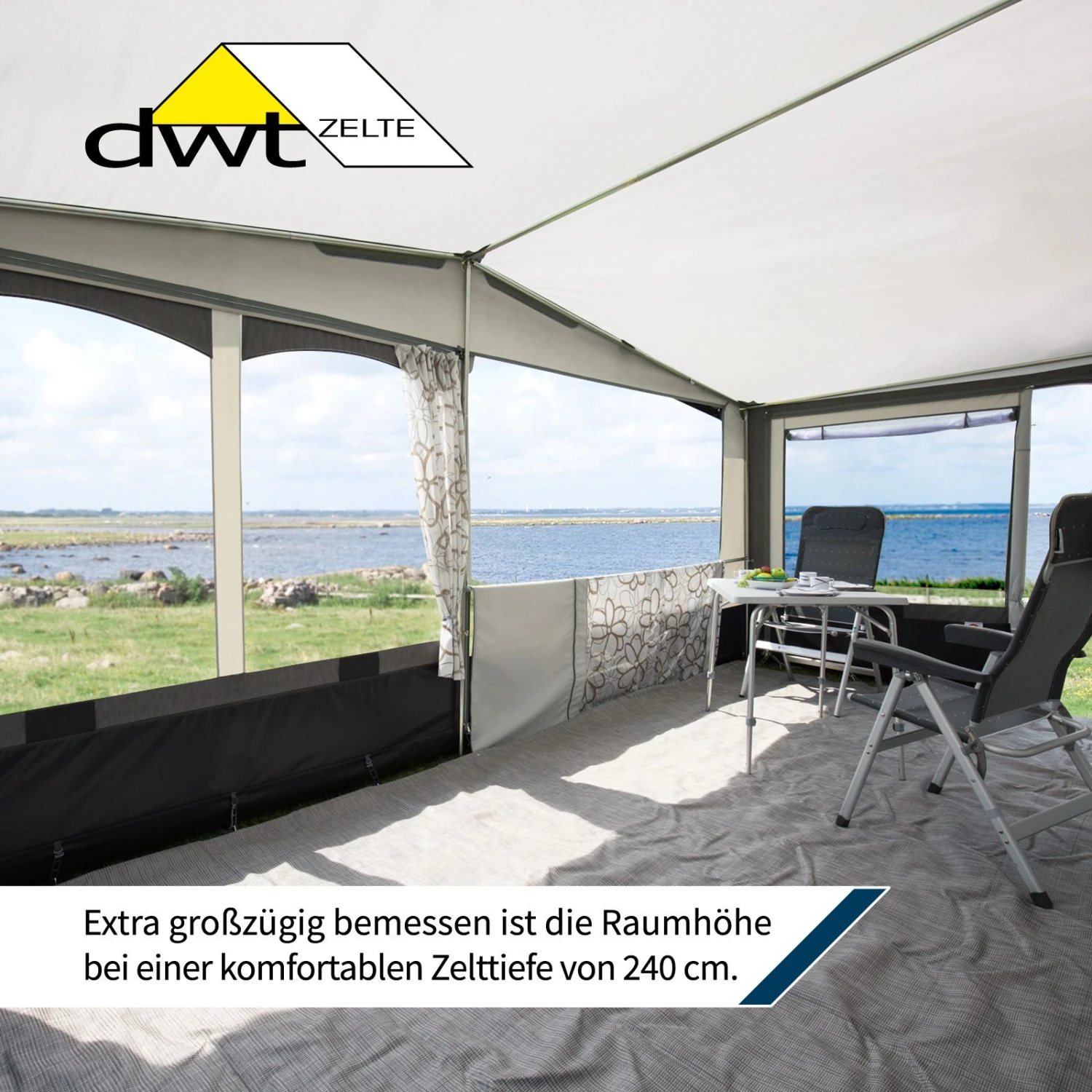 Ein typisches Reisezelt. Die serienmäßige Ausstattung lässt hieran keinen Zweifel. Mit der modernen, frischen und zeitgemäßen Farbgebung werden Sie an Ihrem Urlaubsort die staunenden Blicke auf sich ziehen. Genießen Sie die Annehmlichkeiten dieses Modells und vielleicht gönnen auch Sie sich etwas mehr Platz!