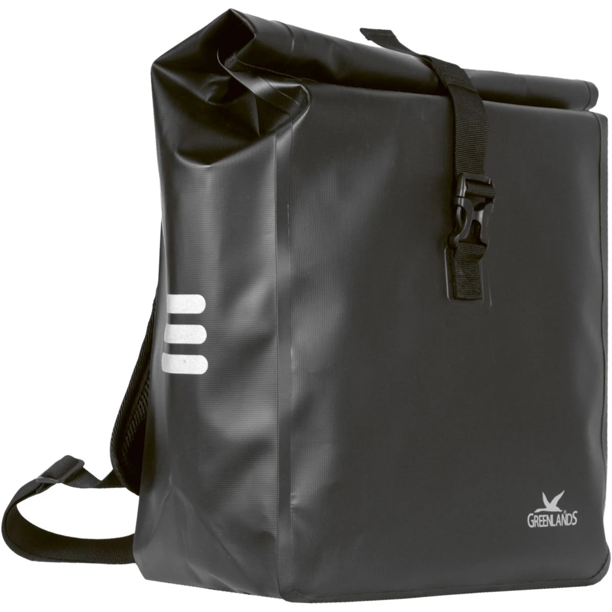 Die wasserdichte Fahrradtasche von Greenlands® besteht aus extrem starker Plane. Diese 100 % wasserdichte Fahrradtasche ist in 23 Litern erhältlich. Die verschweißten Nähte in Kombination mit dem Rollverschluss machen diese Taschen zu 100 % wasserdicht. Die Haken sind für fast alle Gepäckträger geeignet und einfach zu montieren. Darüber hinaus können Sie die Fahrradtasche mit dem mitgelieferten abnehmbaren Schultergurt problemlos mitnehmen (zum Einkaufen). Damit Sie an dunklen Tagen im Straßenverkehr besser sichtbar sind, ist die Fahrradtasche mit reflektierenden Elementen ausgestattet. Diese Fahrradtasche ist gleichzeitig ein Rucksack.