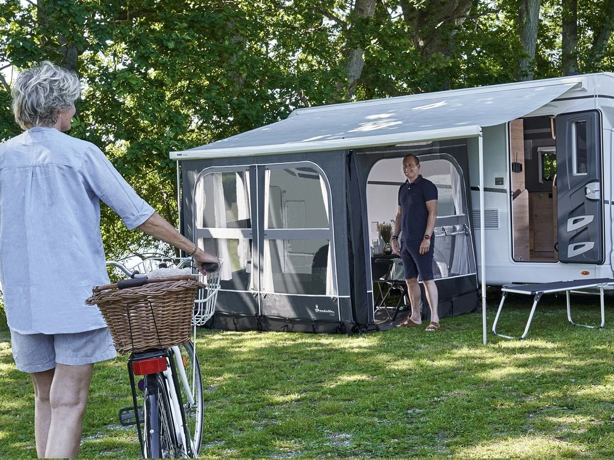 Mit dem Isabella Buddy Seitenwand-Set können Sie Ihre Kassettenmarkise in ein geschlossenes Vorzelt verwandeln.