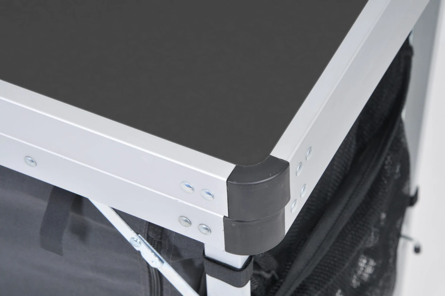 Wenn Sie den Deckel schließen, können Sie diese Campingküche als normalen Campingschrank nutzen. Ideal für die Momente, wenn Sie nicht kochen.