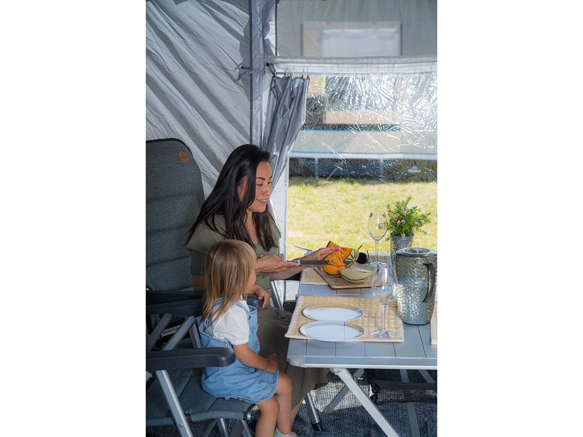 Der Rolltisch Puglia 140 von Obelink ist ein robuster Aluminiumtisch mit aufrollbarer Platte, perfekt für Camper, die eine praktische und platzsparende Lösung suchen.