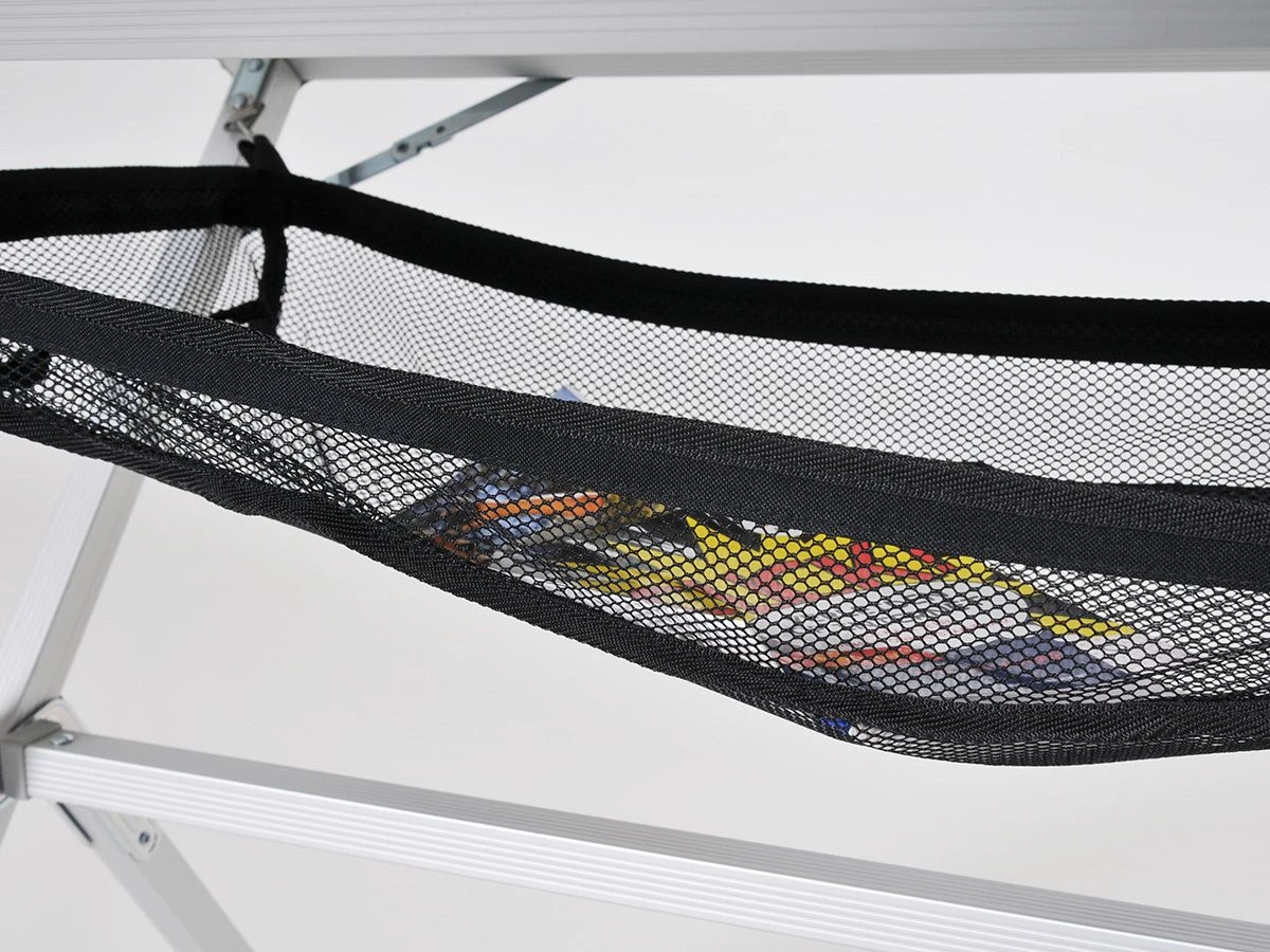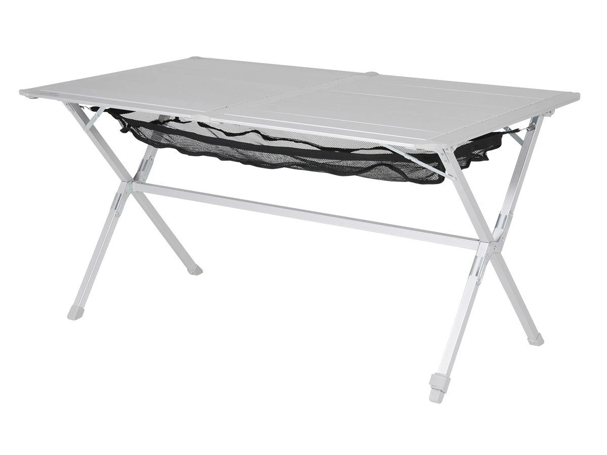 Mit Abmessungen von 140 x 79 x 70 cm bietet der Obelink Puglia ausreichend Platz für verschiedene Campingaktivitäten. Das Aluminiummaterial macht den Tisch feuchtigkeits- und hitzebeständig, so dass Sie den Puglia sogar als Kochtisch verwenden können. Darüber hinaus verfügt der Tisch über ein praktisches Aufbewahrungsnetz unter der Tischplatte, in dem Sie Kleinigkeiten wie Küchenutensilien, Servietten oder Campingzubehör verstauen können. Der Tisch hat eine maximale Belastbarkeit von 30 kg, so dass Sie Ihre Sachen bedenkenlos darauf abstellen können.