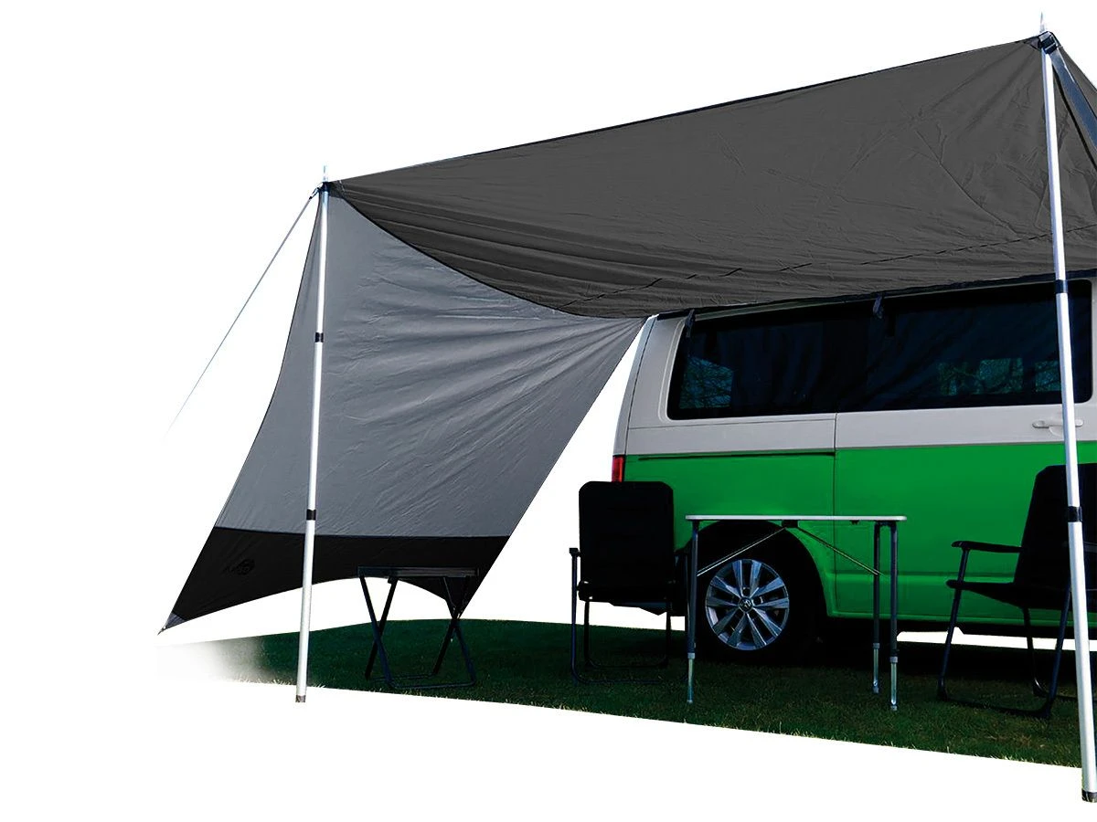 Das Obelink Pula ist ein universelles Vorzelt mit Seitenwänden, das sowohl für einen Bus als auch für einen Wohnwagen geeignet ist.