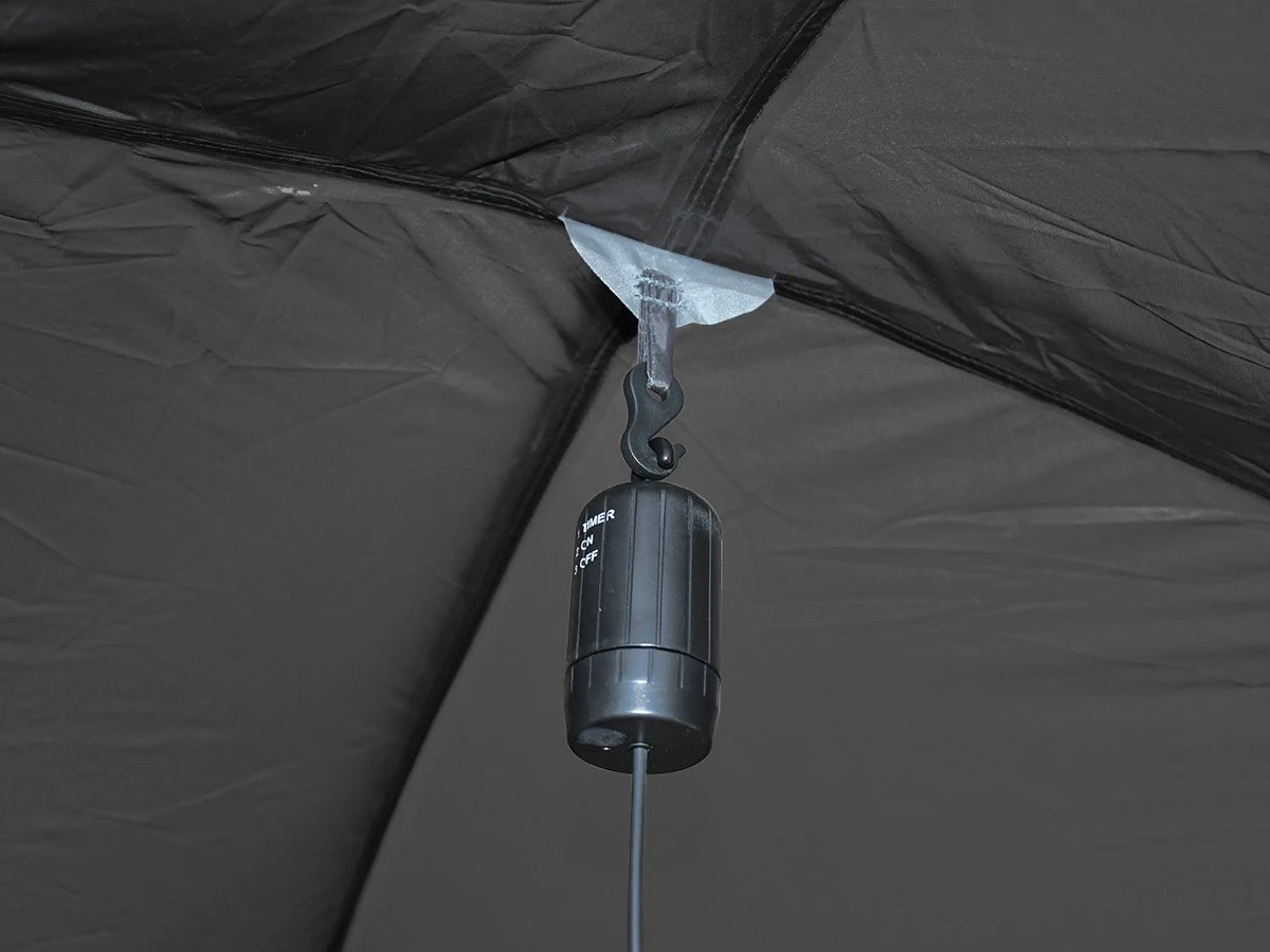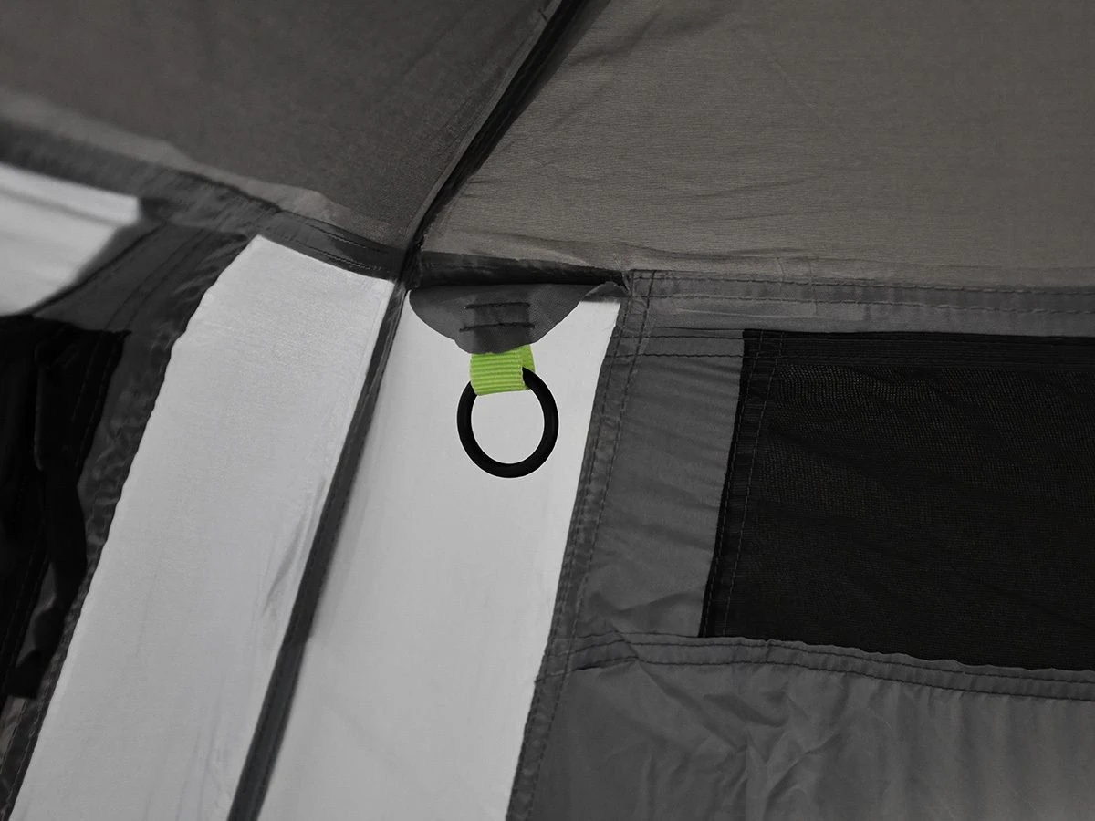 Das Vorzelt bietet Ihnen zusätzlichen Platz für einige Stühle und einen Tisch, damit Sie bei schlechtem Wetter geschützt sitzen können. Damit Sie sich nicht abgeschottet fühlen, ist das Vorzelt an beiden Seitenwänden mit zwei großen Fenstern ausgestattet. Diese können Sie, wenn Sie sich mehr Privatsphäre wünschen, von außen mit einer Abdeckklappe verschließen.