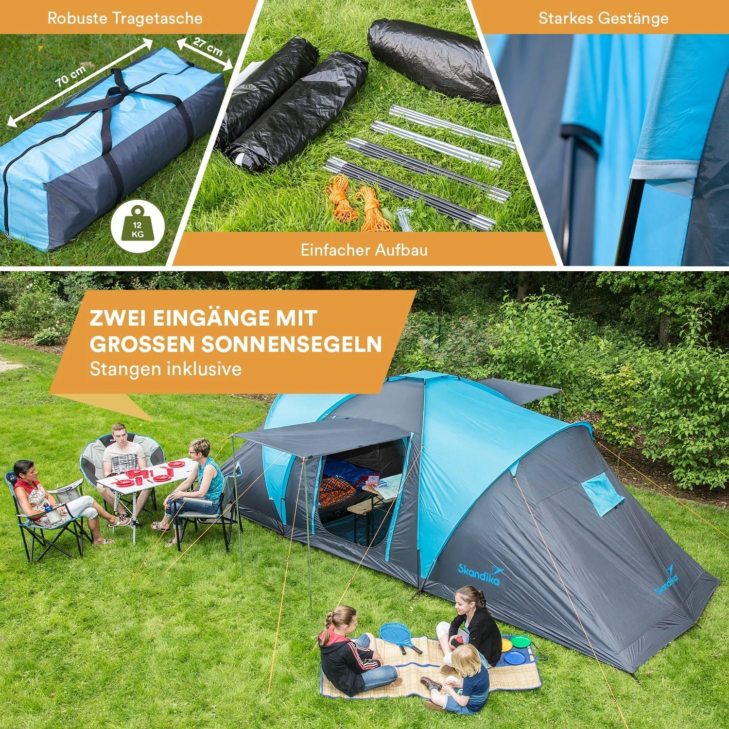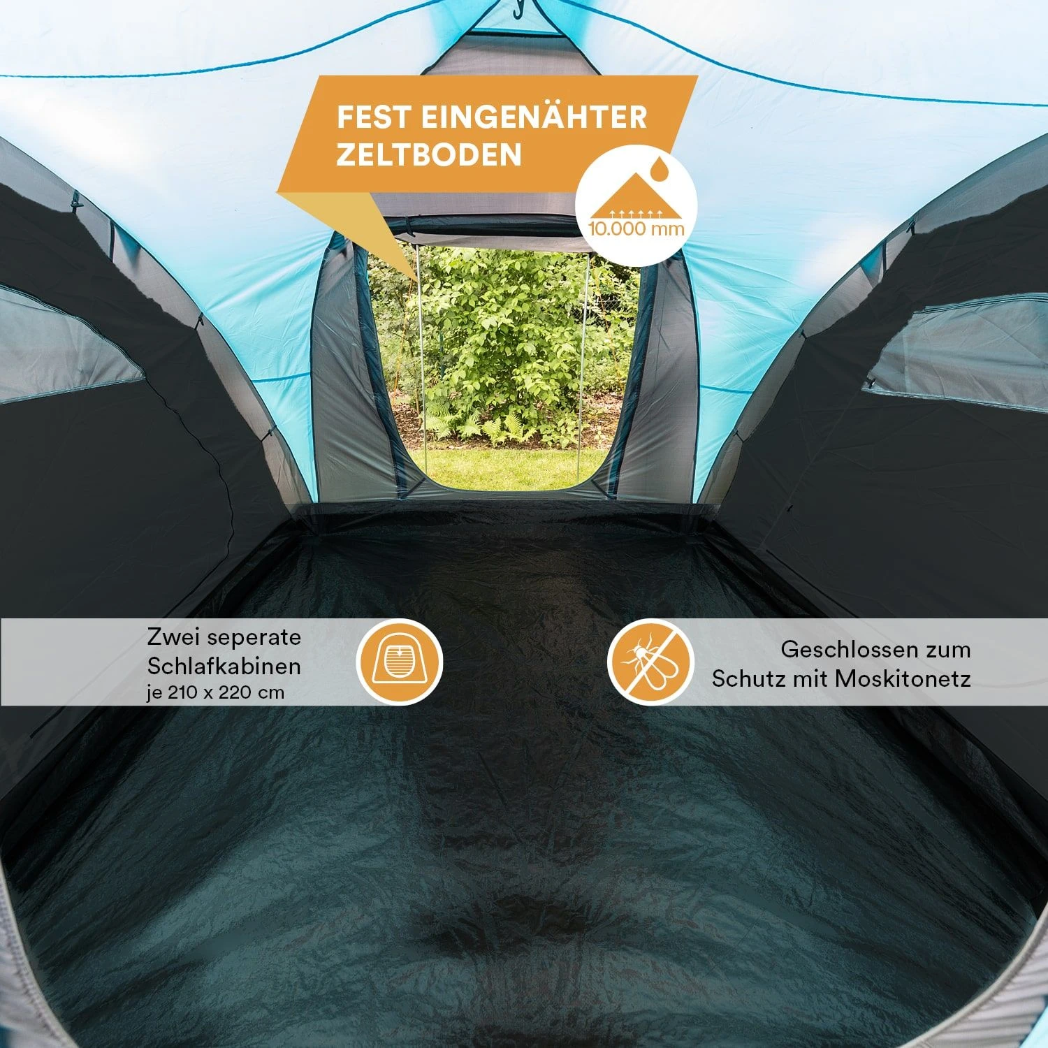 Die großen Schlafkabinen bieten reichlich Platz für jeweils 3 Personen. Dank der Skandika Sleeper Technologie sind die Schlafkabinen und das Material um die Kabinen herum aus einem Spezialmaterial, das fast vollständig den Lichteinfall verhindert. Somit ist länger schlafen, die Kinder früher ins Bett bringen oder einfach ein kleines Nickerchen machen jederzeit möglich. Zusätzlich zu der normalen Tür der Schlafkabinen besitzt jede Schlafkabine ein Moskitonetz, wodurch die Tür als eine Art Jalousie fungieren kann, um den Grad der Dunkelheit im Schlafraum anzupassen, ohne den Schutz vor zum Beispiel Insekten zu verlieren.