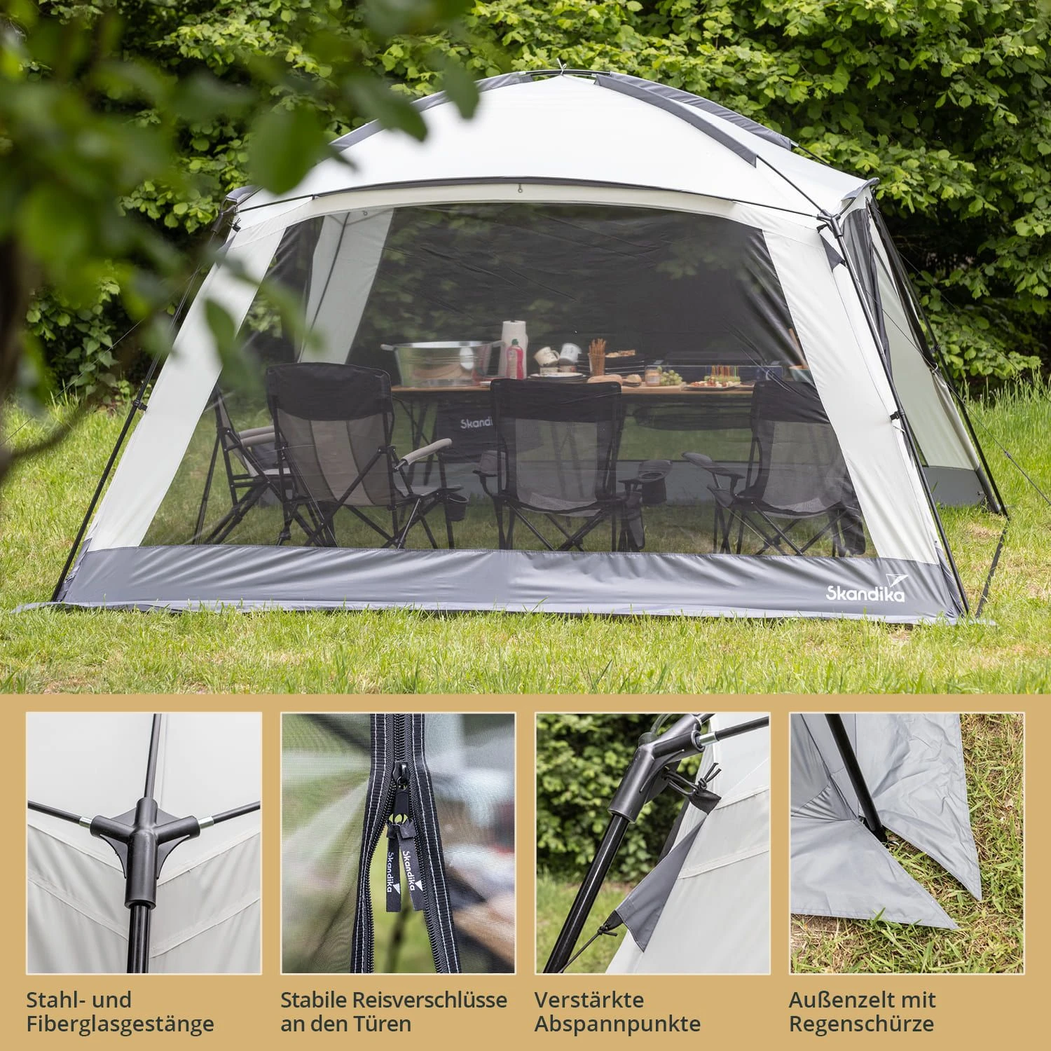 Das Skandika Pavillon Fortun 350 präsentiert sich somit als ein flexibler und komfortabler Raum, der den Outdoor-Bereich erweitert und vielseitig eingesetzt werden kann. Mit Skandika wird die Freiheit und der Komfort des Outdoor-Lebens auf ein neues Level gehoben.