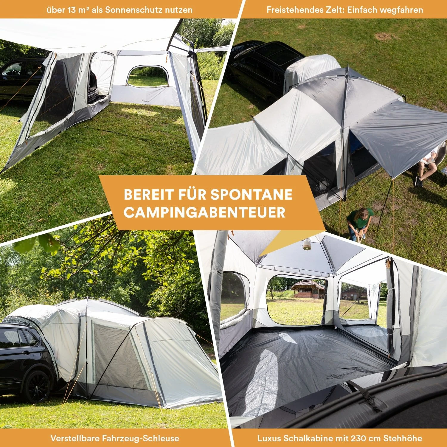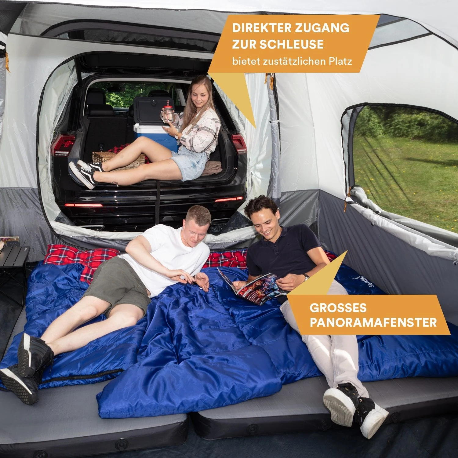 Große Freiheit ganz ohne Camper! Ob für spontane Campingabenteuer, unvergessliche Roadtrips oder Sommerurlaube in der Natur: mit den Pitea Auto-Vorzelten von Skandika wird jede Tour mit dem eigenen Auto zum Outdoor-Erlebnis! Einfach Traumspot ansteuern, Kofferraum oder Schiebetür öffnen und das Pitea andocken – so grenzenlos einfach war Camping-Romantik noch nie!