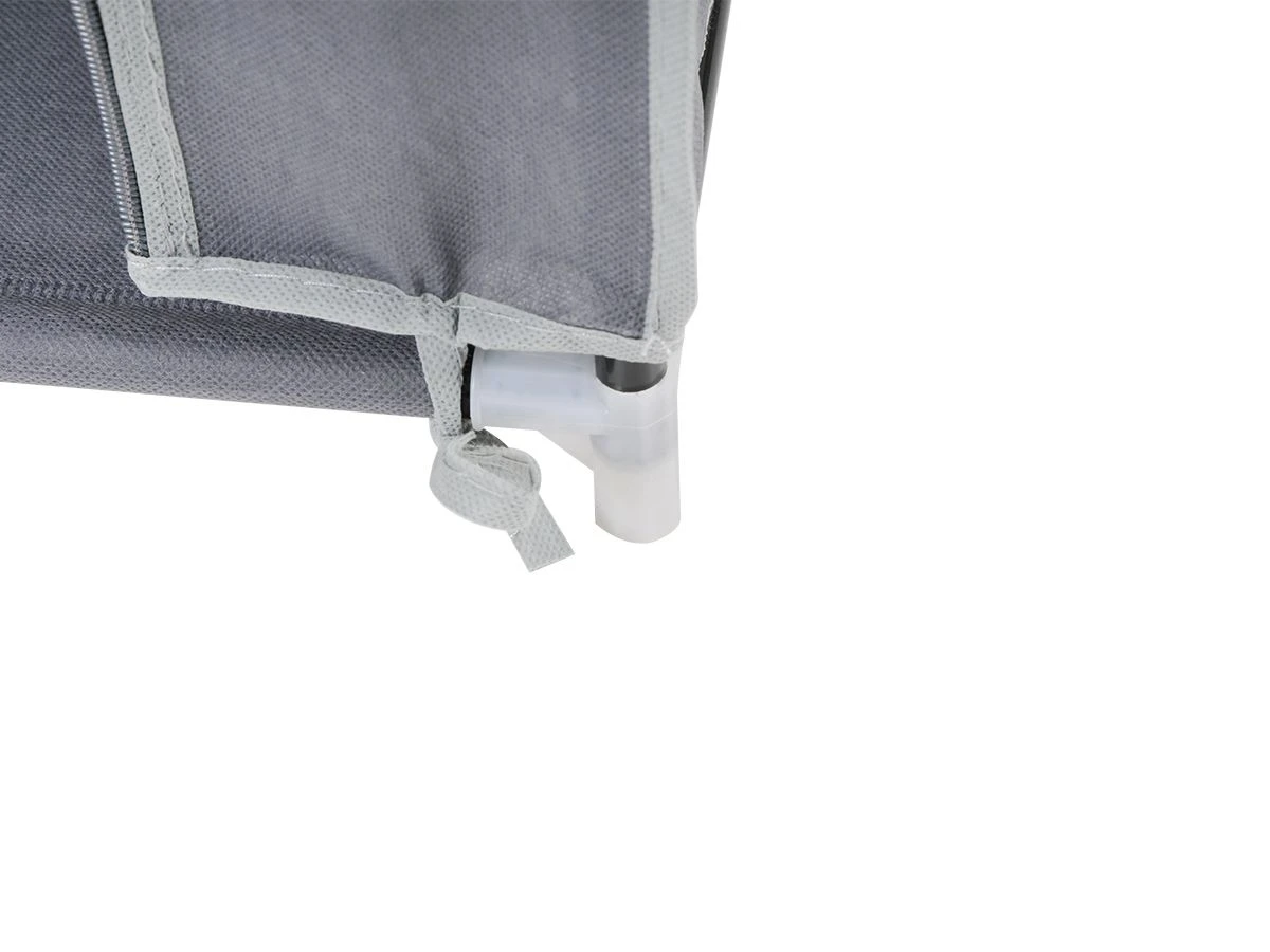 Der Schrank hat 3 Einlegeböden und kann mit einem Reißverschluss geschlossen werden.