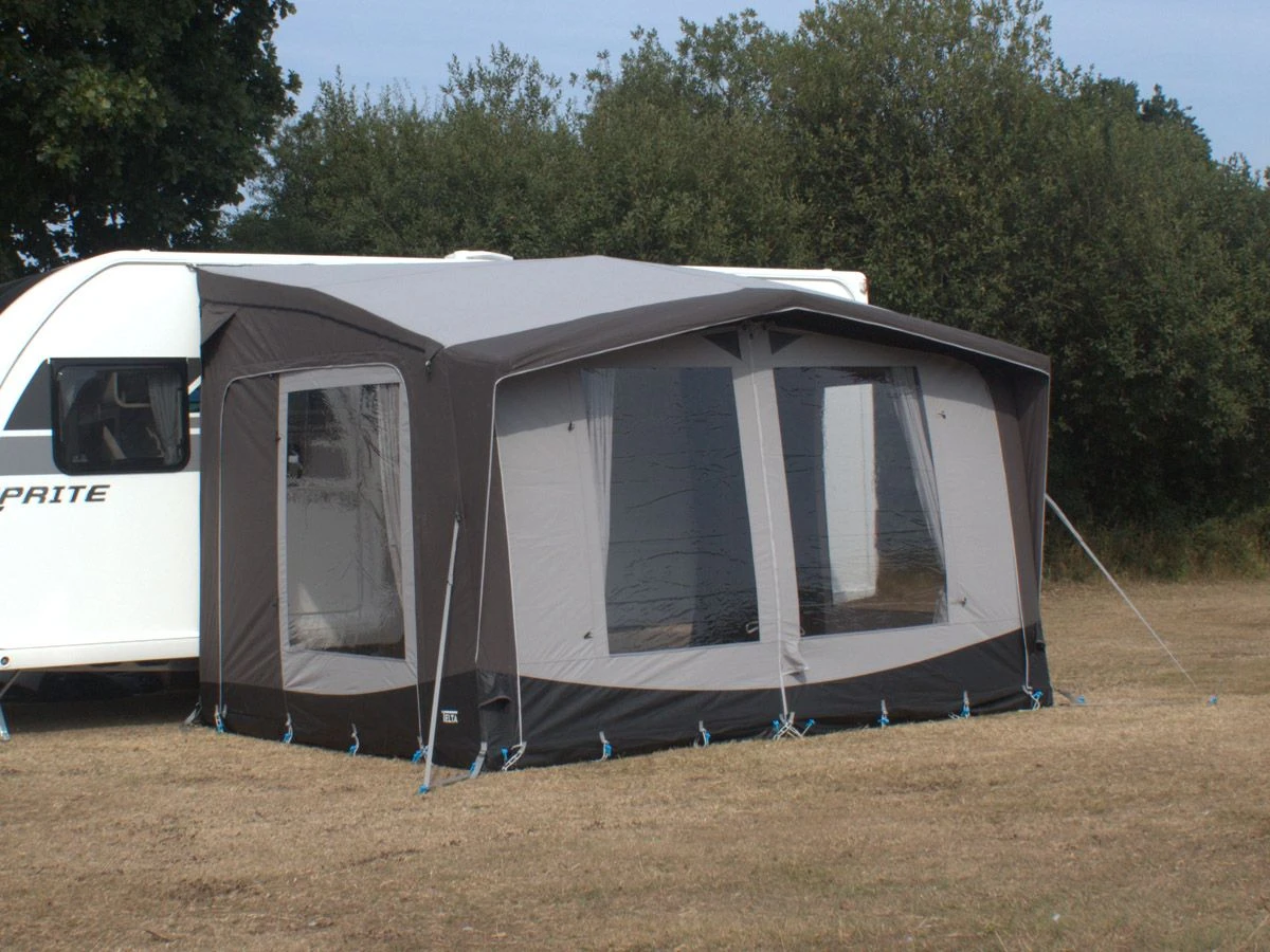 Die Vorzelte von Telta sind mit zwei Kedern ausgestattet, einem 7-mm-Keder zur Befestigung am Wohnwagen und einem 5-mm-Keder zur Befestigung an Kassettenmarkisen. Dadurch sind die Vorzelte sowohl für Wohnwagen als auch für Wohnmobile geeignet. Dank der integrierten Höhenverstellung mit Reißverschluss können die Vorzelte einfach und schnell von 235 auf 280 cm in der Höhe angepasst werden, ohne dass überschüssiges Zeltmaterial auf dem Boden hängt.