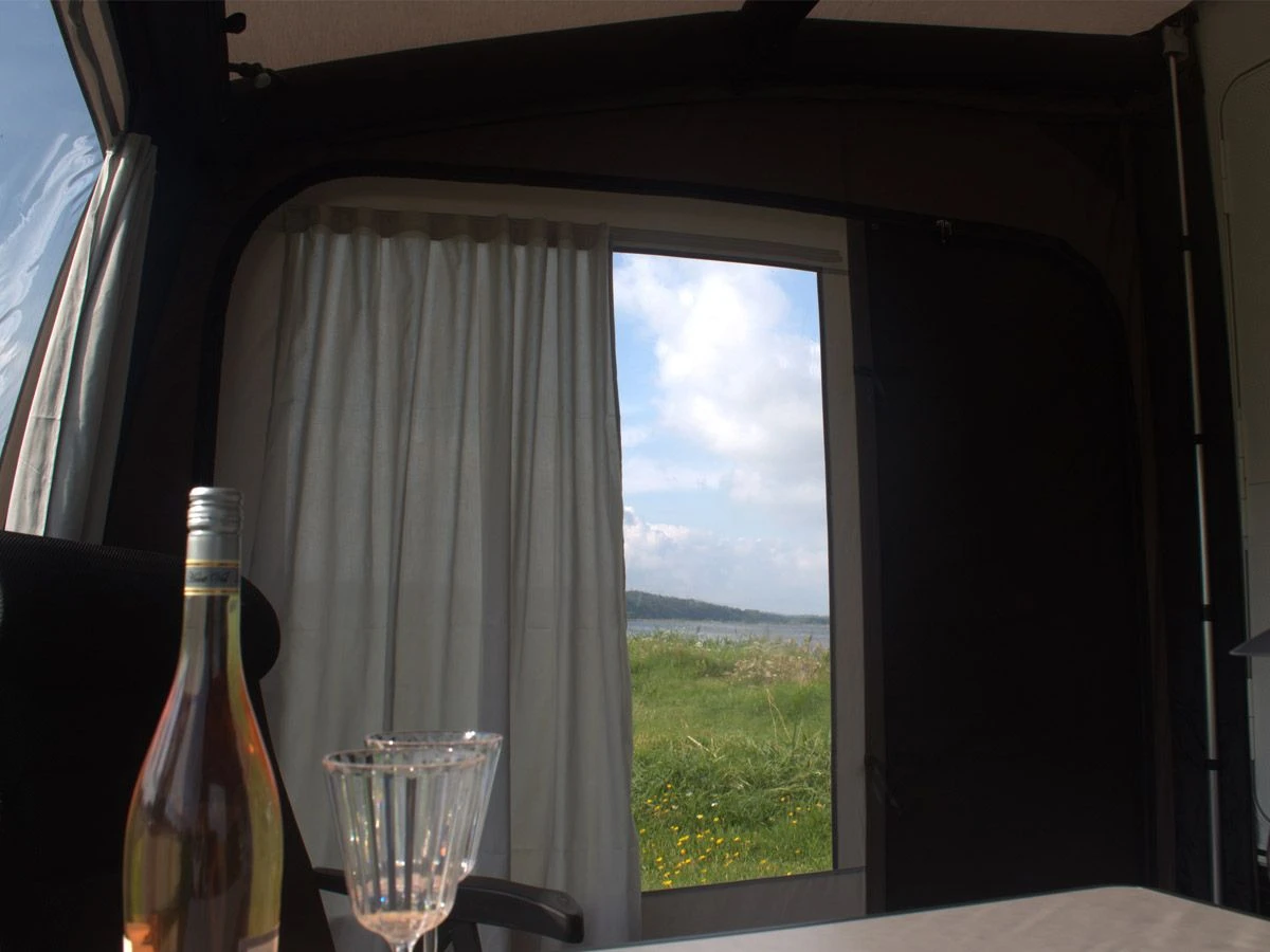 Die Pure Serie von Telta besteht aus einfachen, zugänglichen und benutzerfreundlichen Vorzelten, die Life-Serie von Telta besteht aus schlichten Vorzelten, die dank ihres 5-eckigen Designs mehr Innenraum bieten. In der Mitte ist das Vorzelt tiefer als an den Seiten. Trotz des schlichten und scheinbar einfachen Designs wurde an alles gedacht. Alle Wände sind komplett abnehmbar, sodass das Vorzelt im Handumdrehen in einen Sonnenschutz verwandelt werden kann. Dank der extra hohen Vorderwand gibt es ausreichend Stehhöhe. Die Wände sind ca. 187 cm hoch, sodass Sie das Vorzelt ohne Bücken betreten können. Dank der großen getönten Fenster ist viel Licht und Privatsphäre vorhanden. Für vollständige Privatsphäre können alle Fenster von innen mit den mitgelieferten Vorhängen abgedeckt werden.