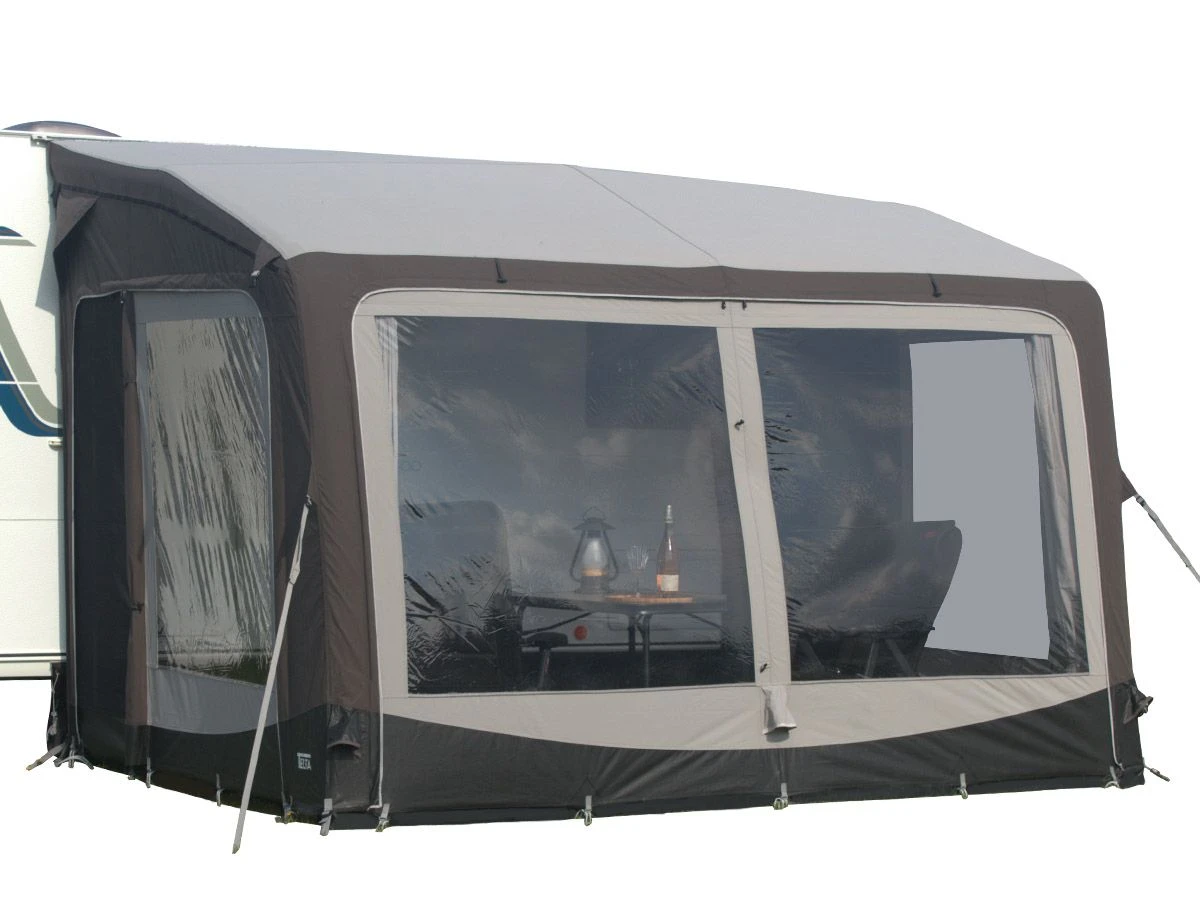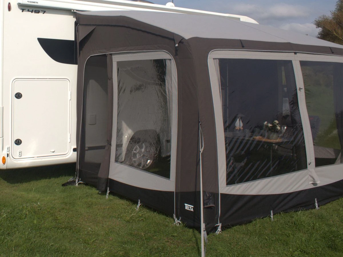 Die Vorzelte von Telta sind mit zwei Kedern ausgestattet, einem 7-mm-Keder zur Befestigung am Wohnwagen und einem 5-mm-Keder zur Befestigung an Kassettenmarkisen. Dadurch sind die Vorzelte sowohl für Wohnwagen als auch für Wohnmobile geeignet. Dank der integrierten Höhenverstellung mit Reißverschluss können die Vorzelte einfach und schnell von 235 auf 280 cm in der Höhe angepasst werden, ohne dass überschüssiges Zeltmaterial auf dem Boden hängt.
