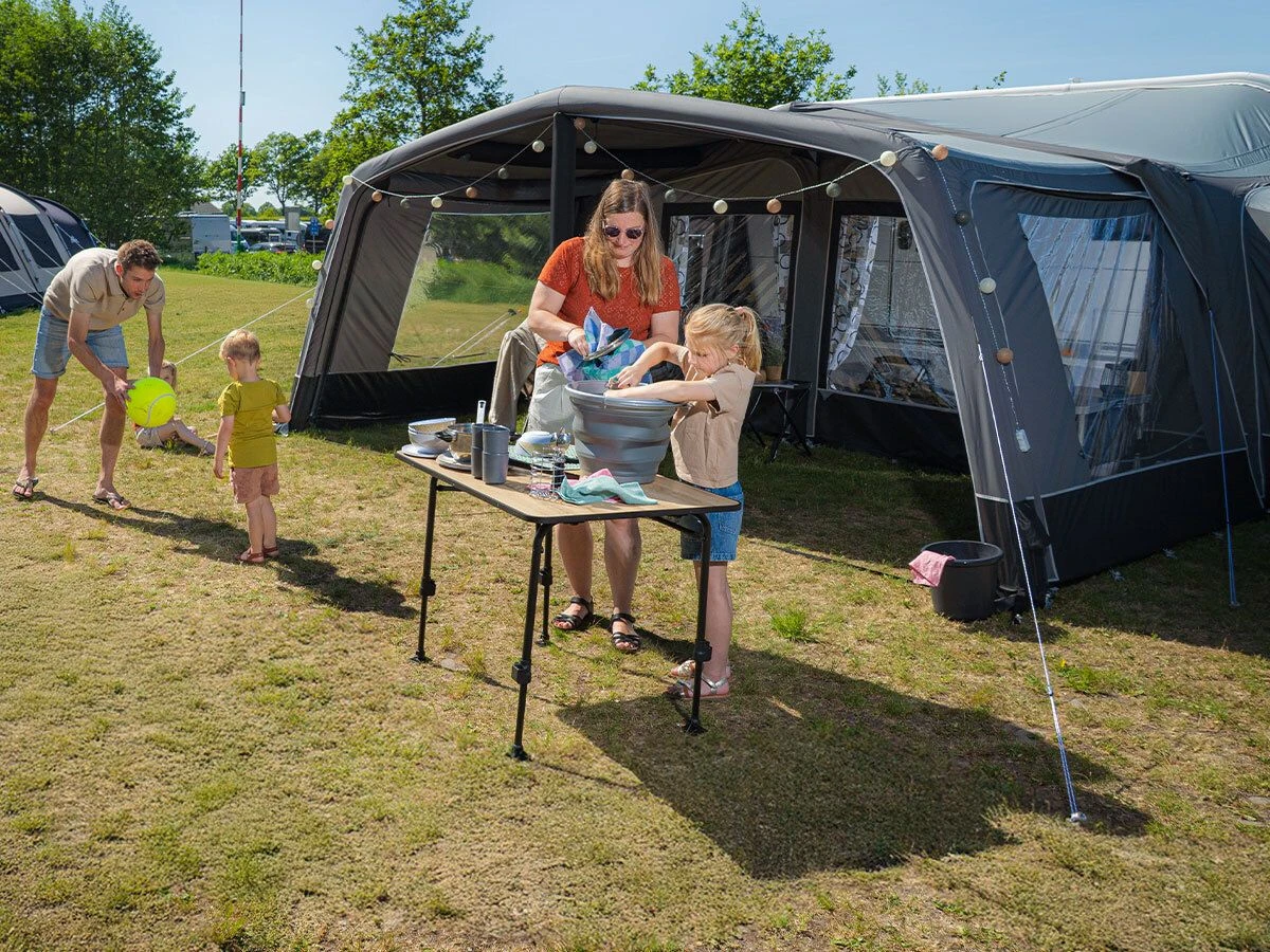 Das Obelink Neptune Easy Air Sunroof ist ein Vorzelt mit abnehmbaren Seitenwänden, die mit Hilfe von Clips und Klettverschluss mit dem Vorzelt verbunden werden können. An beiden Ecken befindet sich eine Schnalle, um das Vorzeltvordach mit dem optionalen Sturmgurt-Set zu sichern. Dank des flexiblen Polyestergewebes ist die Markise sehr leicht und einfach zu spannen. Das macht das Obelink Neptune Sonnendach ideal für Campingurlaube, bei denen das Vorzeltvordach 2 bis 3 Wochen lang angeschlossen bleibt.